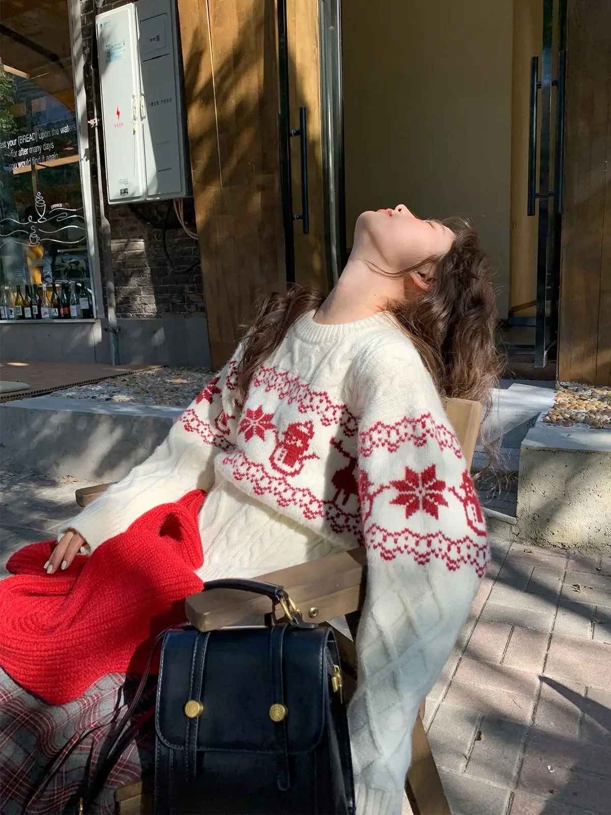 Pull Vintage en Jacquard – Motifs Losanges et Esprit de Noël